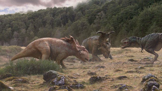Zapomeňte na Jurský park! Teprve teď máte opravdu možnost stát se součástí světa, v němž vládnou dinosauři. To, co jste si mohli zatím jen představovat, se stává skutečností a vaše cesta do druhohor může začít. Zažijete putování s dinosaury v dobách, kdy vládli Zemi. Jejich cesta začíná před 70 miliony let na Aljašce, kdy je každý rok dlouhá a temná zima nutí v tisícihlavých stádech k stěhování z jejich domovů za potravou na jih. Dinosauři už dlouho představují jedinečný fenomén, který jako magnet přitahuje děti i dospělé. A není to jen jejich gigantickými rozměry a růzností druhů. Stále si klademe otázky: „Kam zmizeli? Jak žili? Jaké byly jejich vzájemné vztahy? Žijí mezi námi jejich potomci?“ A na základě nejnovějších poznatků je právě vybudován příběh filmu Putování s dinosaury – film ve 3D, který je vrcholným a strhujícím zážitkem stvořeným právě pro filmové plátno. Nedávné paleontologické objevy ve spojení s průlomovými filmovými technologiemi nyní představí nové a jedinečné dinosaury, kteří jsou skutečnější než kdy předtím. V průběhu této velké podívané prožijeme životní příběh býložravého Pachyrhinosaura, který se narodil jako nejmenší mládě, a od počátku se tak musí vyrovnávat se svými soutěživými sourozenci, s drsným a nevyzpytatelným světem, se zuřivými a hladovými predátory jako je zákeřný Troodon nebo monstrózní Gorgosaurus. Náš hrdina sice nikdy nebyl tím největším a nejdrsnějším dinosaurem své doby, ale dokázal, že pro evoluci může být důležitější i něco jiného, než jen být největším a nejsilnějším. A tak díky své statečnosti a schopnosti spolupracovat s dalšími členy migrujícího stáda nejen dokáže přežít, ale stane se pro své druhy nepostradatelným vůdcem a ochráncem stáda. Přijďte zažít dobrodružství tak skutečné, že se ocitnete přímo mezi dinosaury, prožijte dobu těchto obrů v největším příběhu za posledních 100 miliónů let, který byl inspirován veleúspěšným seriálem televize BBC.