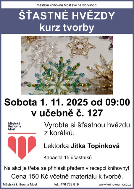 Vyrobte si šťastnou hvězdu z korálků pod vedením lektorky Jitky Topinkové.