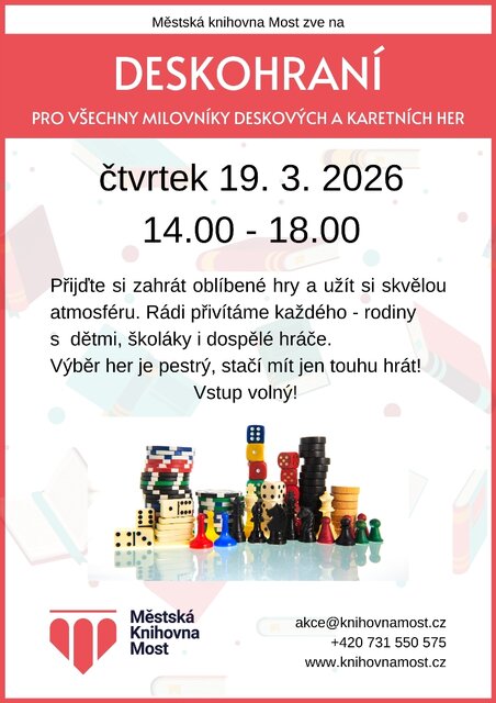 Zveme Vás na naše již tradiční deskohraní ve čtvrtek 19. 3. 2026 od 14:00 do 18:00!